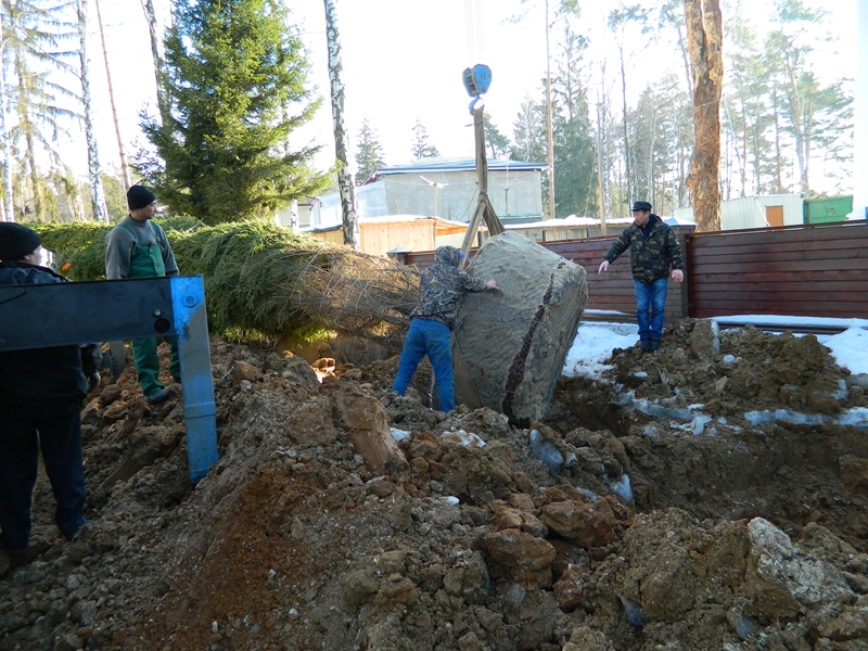 Посадка крупномеров (больших деревьев)